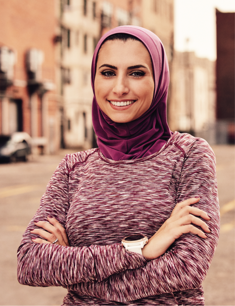 “Don’t you get hot?” Rahaf Khatib asks, laughing. The six-time marathoner says this is the question she receives most often from other runners. “I respond, ‘If it’s hot outside, you’re going to be warm regardless!’ I don’t mind at all—I’m just being me. I’m in my zone and I don’t notice what’s on my head or anything else.”