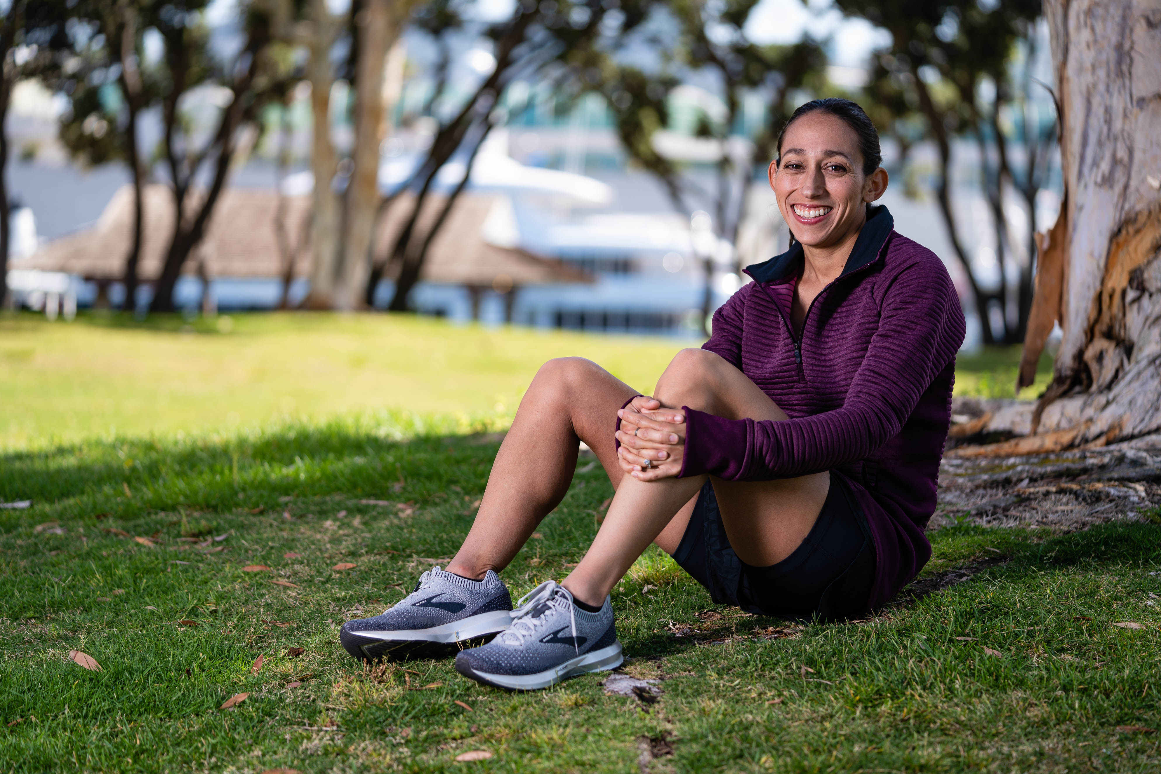In early June 2018, the Women’s Running editorial team and our trusted photographer, Oliver Baker, met with 2018 Boston Marathon champion Desiree Linden to take photos for the November/December issue of our magazine (on newsstands now!). Browse through some of our favorite behind-the-scenes moments below, all taken at the Embarcadero Marina Park in downtown San Diego, Calif. Don’t forget to pick up your copy of the issue to read our “2018 Game Changers” feature, which examines how Linden and 14 other incredible women are making positive impacts on the world through running.