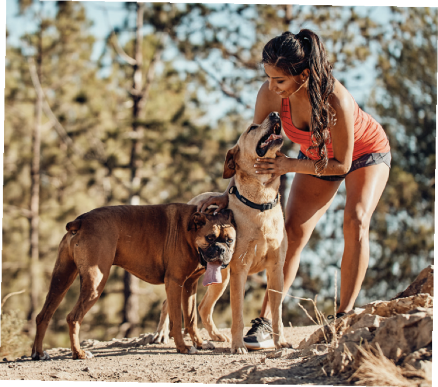 Ruiz says she prefers to run with her dogs untethered in areas that permit this, “such as higher elevations where there is very minimal pedestrian traffic…that way they may enjoy the trails just as humans enjoy the trails off-leash.” She explains, “I started both of my dogs with consistent leash training. I introduced brief periods of off-leash only in environments where there were minimal distractions in order for them to first learn to focus on remaining near me at all times. Once an established, trusting relationship has been established, then it is safe to run off-leash—always in an environment that is suitable and safe for your dog, such as trails, a dog beach and/or dog park away from vehicular traffic. Another important factor in running off-leash with dogs is socialization. Dogs should be socialized with other dogs and humans early during the dog-training process.”