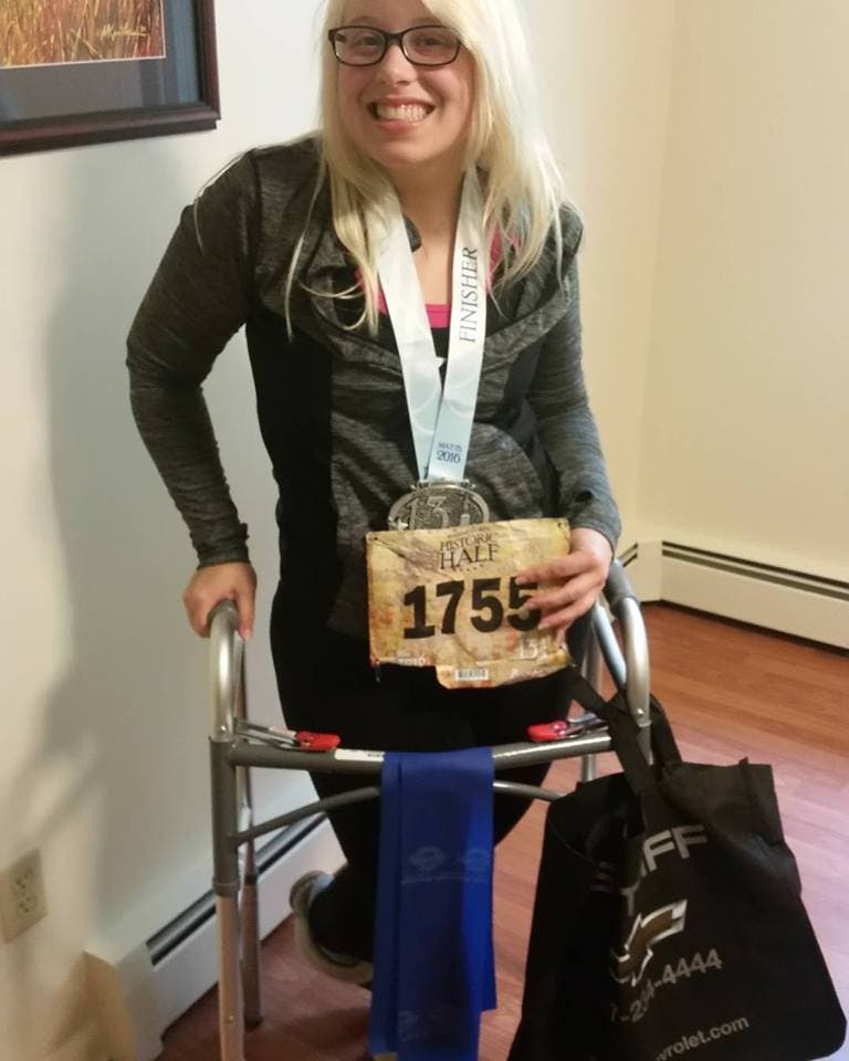 I am extremely proud to say that in only 10 months I went from relying totally on a walker to finally crossing the half marathon finish line! Recovery time was estimated at least a year, if I was lucky. In spring 2017, I ran the Shamrock Anthem Half Marathon.