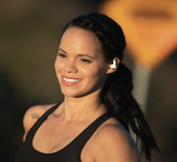 While running on canyon trails, Lleras got to try out the new X3 Wireless Bluetooth Headphones from Jaybird. The sweat-proof, secure-fit buds offer a hands-free running experience and the opportunity to switch up the bass to match your mood. On set, Lleras’ daughter Hailey helped direct the playlist and danced along to make her mom smile. Her current favorite jam? “Starboy” by The Weekend.