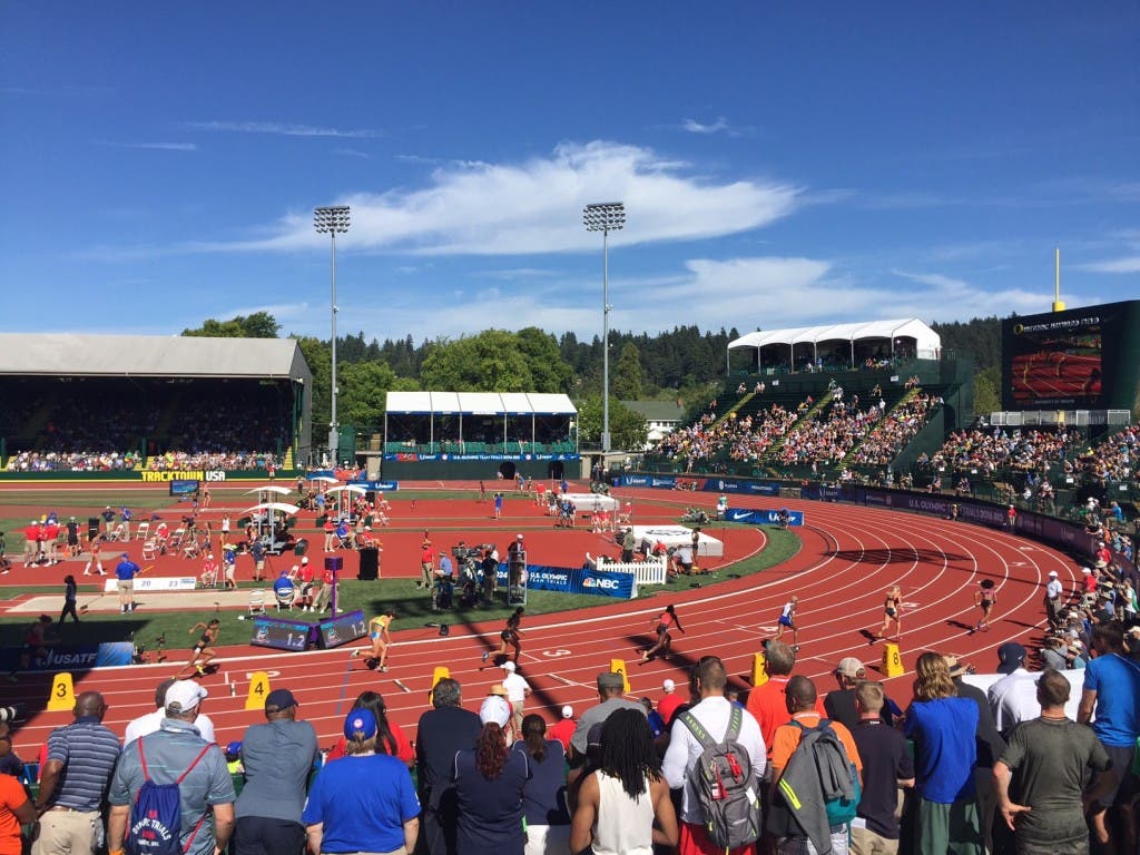 The energy in the stadium was unbeatable. A nearly packed Hayward Field means people are ready to fan girl (or boy), cheer and be really, really loud no matter the event. Feet were stomping on the home stretch, hands were clapping pretty much the entire time, and every fan was eager to get to their seat for all the track events.