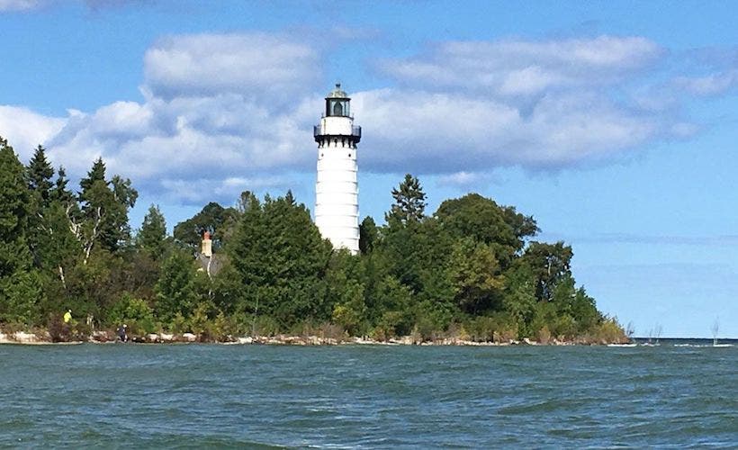Since Door County is so strangely shaped, more than 275 ships have wrecked off its coast—and many of those are visible by boat. One of the county’s 11 lighthouses, located on Cana Island, remains operable after nearly 150 years of service. Standing tall at 97 steps, the Cana Island Lighthouse is only accessible to tourists via a natural causeway that theoretically separates Green Bay from Lake Michigan (though, depending on the time of year, visitors might tromp through several inches of free-flowing water or travel by tractor from the island to the mainland). It’s also one of the spots to which the Door County Adventure Rafting tour pays a visit, bobbing along the water so visitors can take pictures and learn about the original Fresnel lens still in use.