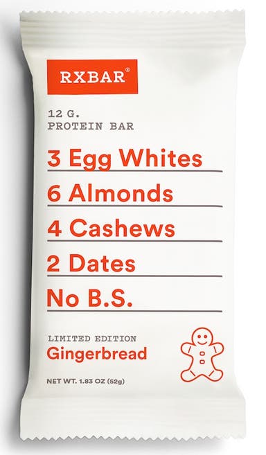 The clean taste and easy-to-read list of ingredients has made RX Bars gain a loyal following. This limited-edition Gingerbread flavor is made with allspice and ginger, and contains 12 grams of protein coming from egg whites, almonds and cashews. It’s a delicious way to refuel post-workout.