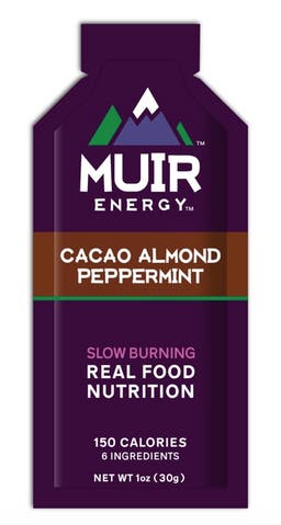 Made with real, whole foods, this almond butter and cacao-flavored gel pack is flavored with peppermint essential oil to give it a festive flair. Each packet is rich in electrolytes and has 150 calories and 15 grams of carbs.