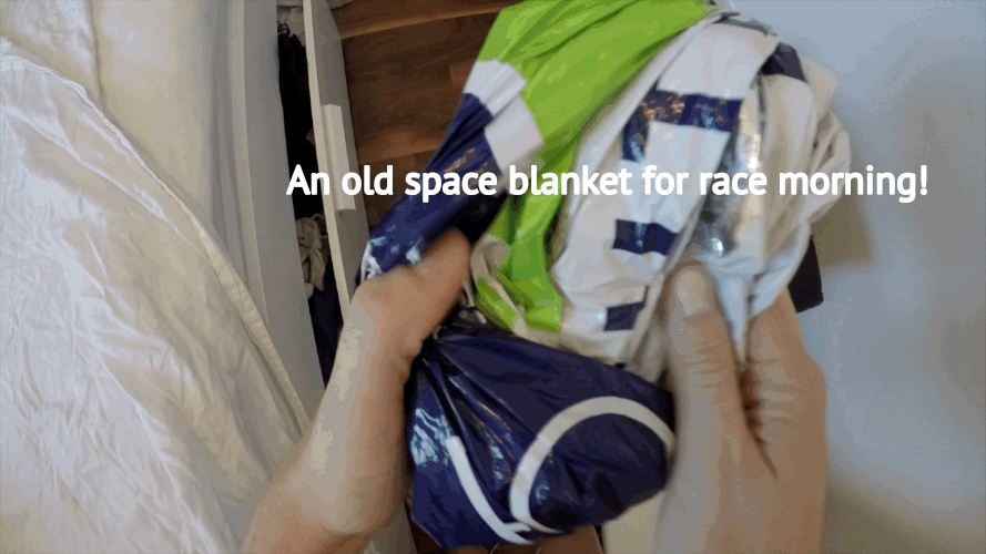 You know that space blanket they give you after you cross the finish line of a race? Save it! They are perfect to bring to stating lines abroad when you don’t have room to pack throw away clothes.
