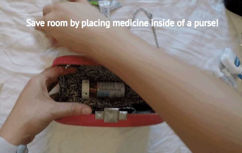 Ibuprofen, prescription medicine, melatonin, vitamins, etc. I place all of my meds into a fancy clutch I like to believe I will wear on said runcation to save space. (And should the occasion present itself, I have a clutch full of meds. Everyone wants to be that person on the trip!).