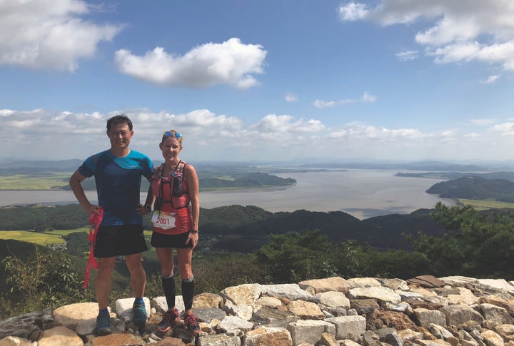 The sights and sounds of this race span the spectrum from entirely familiar—runners snapping selfies, shiny finishers’ bling, supportive cheers and high-fives—to uniquely Korean: sweet rice cakes and cherry tomatoes at aid stations, a K-pop band at the start line and, always, the looming shadow of North Korea alongside us.