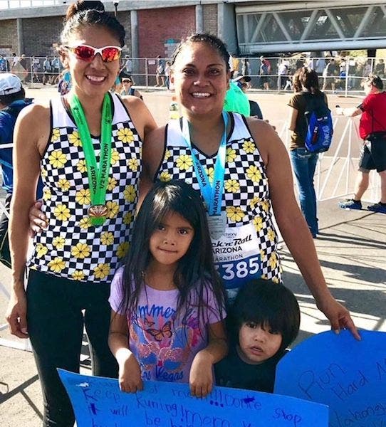 By the time Lewis was a teenager, she was winning cross-country races and became a three-time state champion at Hopi High. After running competitively her first year at a community college, Lewis took a hiatus from school and running and had her two daughters. In 2006, the young mom returned to both, eventually earning her associate degree and, later on, a bachelor’s degree from Arizona State University.
