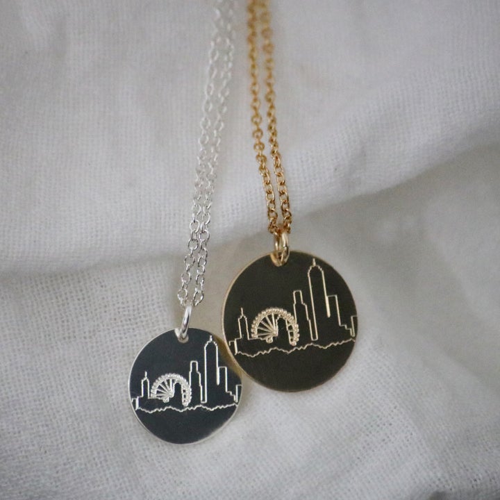 The traditional gesture of a medal might be missed by some, but like runner and jeweler Erica Sara points out, “It’s not something you can wear everyday.” That’s why she is taking it upon herself to create her own version of a finisher “medal:” an engraved necklace with the Atlanta skyline and the course elevation below. Sara will also do custom engraving on the back for free if a runner would like to commemorate their bib number, race time, or a mantra that got them through.