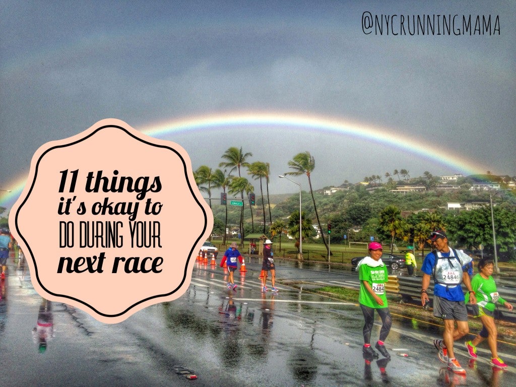 Take a deep breath and relax. It’s OKAY to do some things, even if they aren’t necessarily the best decisions or if they technically break some of the so-called running commandments. (Who makes these up anyway?) Life and racing is about living and learning, right?