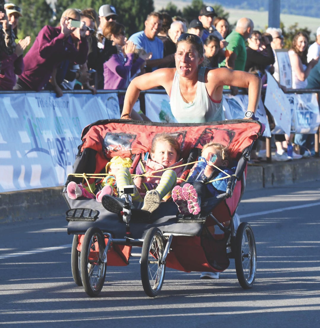 Thanks to superstars like Serena Williams, mom-athletes are enjoying a well-deserved moment in the spotlight. Running moms—including famous ones like Deena Kastor—have been especially inspired by Cynthia Arnold. A 34-year-old from Polson, Mont., Arnold shattered the world record for the half marathon while pushing three kids in a stroller on July 15 at the Missoula Half Marathon. She covered the distance with approximately 150 extra pounds—100 pounds of children and 50 more of stroller—posting a jaw-dropping time of 1:29:08, and finishing 14th overall (the previous mark, 1:47:32, was set earlier in the year).