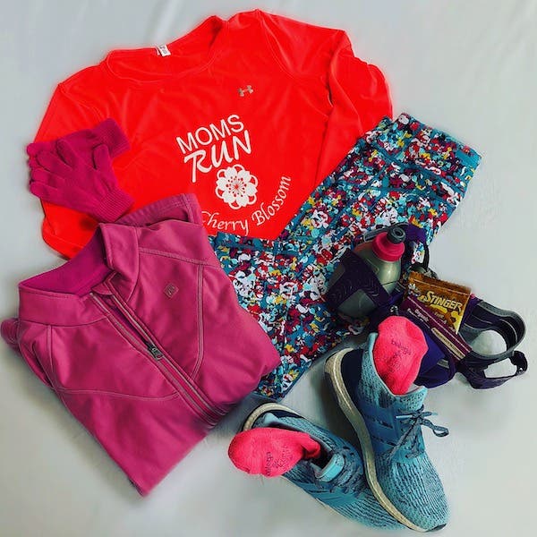 To start, rushing around on race morning trying to find everything you need is never really a good idea. Creating a “flat me” the day before ensures that all of your clothing and gear is ready to go. Including all necessary items (sports bras, socks, underwear, etcetera) helps to make sure you are prepped and ready. I like to include my shoes, hats, gloves and fuel belt, too. No one wants to look for that sports bra at o-dark-thirty.