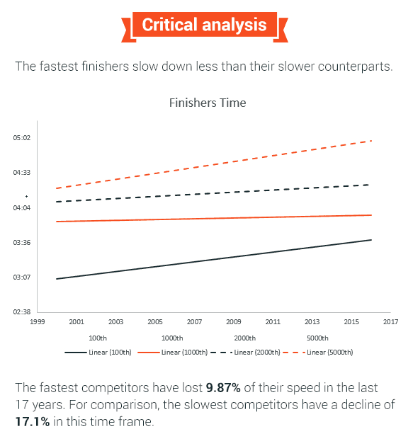 Further, the full study found a correlation between the obesity epidemic and slower finish times.