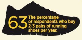 Sixty-three percent of our survey responders buy two or three pairs of running shoes each year.