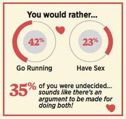 While more runners said they prefer running to having sex, a significant 35 percent of survey responders were undecided.