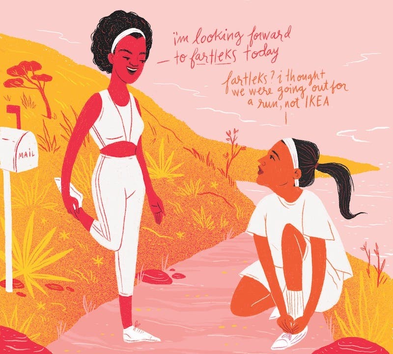 This is a Swedish word for “speed play”—sounds like a blast, right?! The word itself is kind of humorous. And distance, speed and number are up to you. The goal is to keep these variable speed bursts relatively short and snappy. Once you’re into your run, do them from tree to tree, light post to light post, past a certain number of parked cars—whatever makes it work for you.