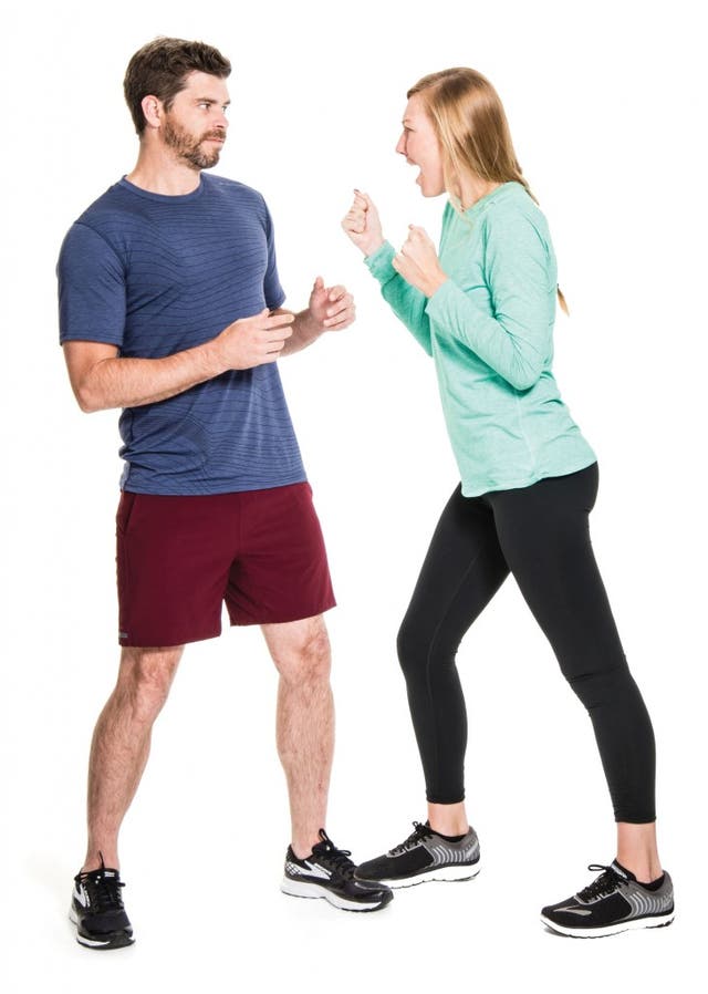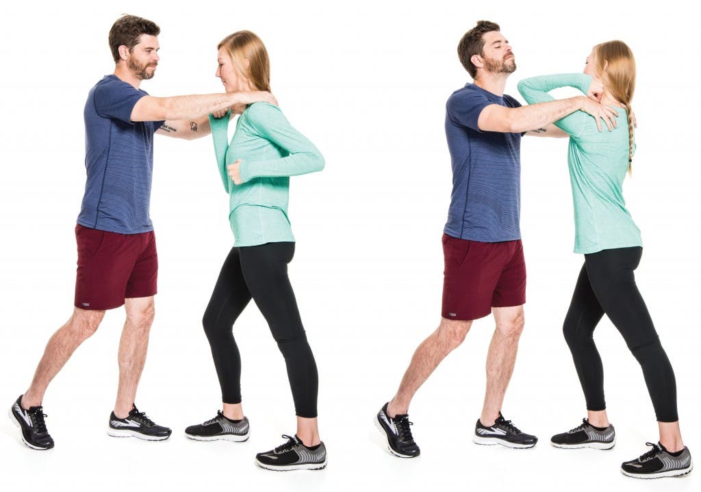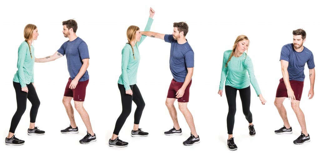 Here, Rubin gives us her eight essential self-defense tactics for female runners. She suggests practicing them whenever you have a spare moment, like while you wait for the subway or for copies at the copy machine. “See how many repetitions you can get in a minute,” she says.
