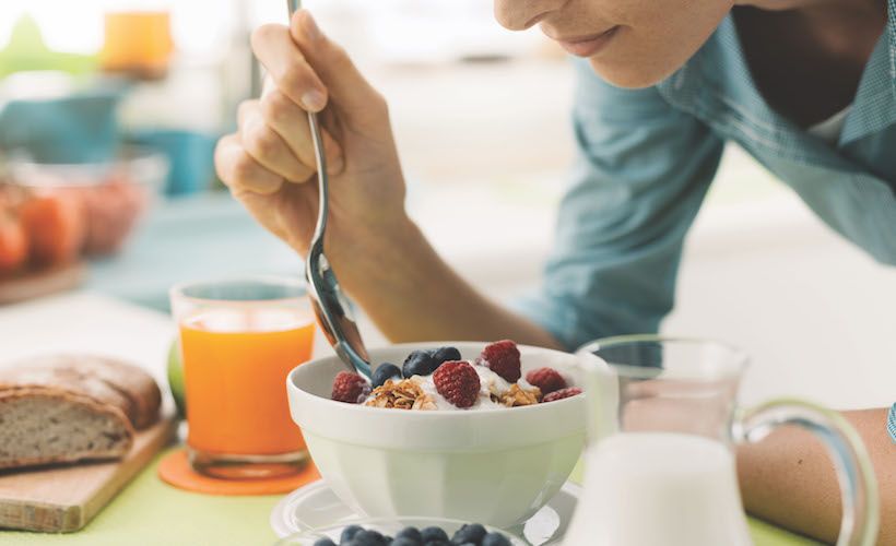 “When falling back into a routine, make morning protein a priority.Research shows that getting 20 grams of protein at breakfast can help you feel fuller longer, while giving you energy to tackle the day. Stock up on easy, grab-and-go protein foods, like hard-boiled eggs, Greek yogurt, peanut butter and whey protein for smoothies.”—Kim Schwabenbauer, nutrition professor and triathlon coach at Fuel Your Passion