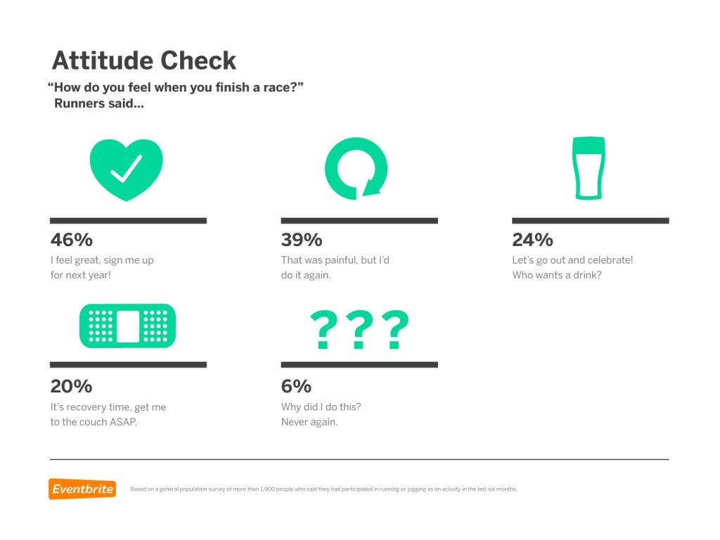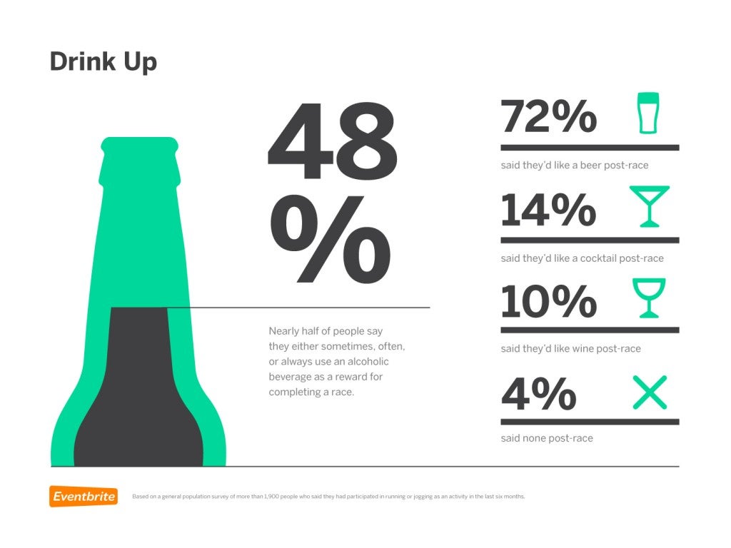 To some, a nice cold beer is the best way to celebrate, while others treat their feet to a nice pedicure. Whatever your post-race preference is, you’re not alone. Eventbrite surveyed more than 1,900 people who attended an endurance race in the last year to find out exactly how they like to celebrate once they crossed the finish line.