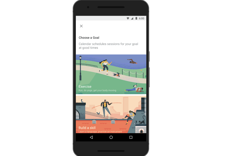 They have made the process as simple as possible: You select a goal, answer a few questions (including how often and when you would like to add it into your schedule) and Google Calendar will find the best time in your schedule for you to complete your goal.