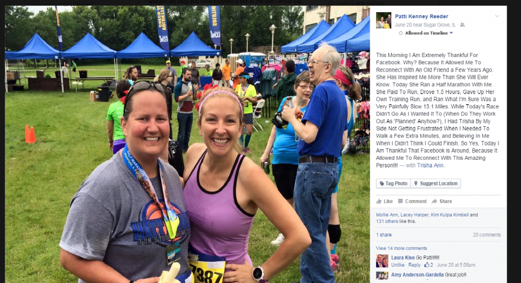 Six months ago I ran a half marathon with someone I knew in high school. I think it would be an overstatement to say we were friends back in the day. But we weren’t enemies, and in my world, high school had a lot more enemies than friends.
