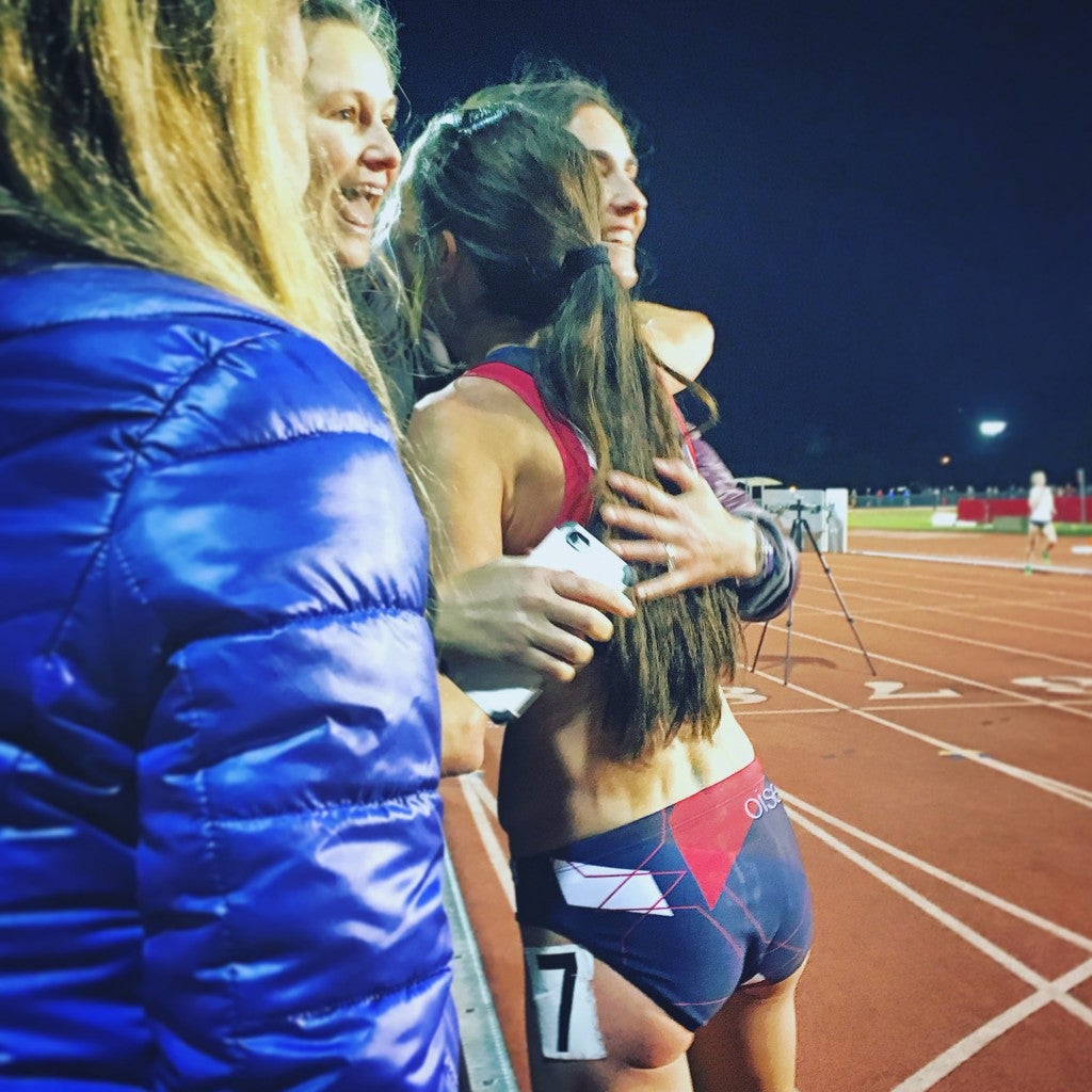 My husband yelled with a mile to go, “You need a 5:05 [mile] to get the standard.” He was referring to the Olympic standard of 32:15. I was going to be under the trials mark if I just held it together, but there was also the chance of the Olympic standard. Yet, I kept running 77-second laps and couldn’t squeeze it down. One lap to go, I realized I could achieve my primary goal and just cruise it in. But I wanted more; I was so close. I gathered myself, got up on my toes, and tried to leave everything out there that night. I crossed the finished line, crowd roaring, my friends screaming, and I heard my husband’s voice: “You got it, you got the standard.” By .58 seconds.