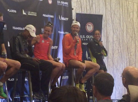 At the press conference following the race, a reporter asked the other Olympic Trials winners on stage—Galen Rupp, Amy Cragg (first for women), Jared Ward (third for men) and Desi Linden (second for women)—to say a few words about Keflezighi. After Cragg, a former teammate of Keflezighi expressed her admiration for the runner, Keflezighi put his hands to his face to wipe away the tears. “Meb is an incredible athlete and that pales in comparison to how wonderful a person he is,” she said. “He truly is just a wonderful person.”