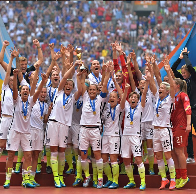 As runners, we acknowledge the endurance and speed it takes for this group of 23 women to average 7 miles over the course of 90ish minutes. It takes a bit more agility and coordination to dribble, slide and kick at the same time. As women, we appreciate the sweaty ponytails—short hairs sticking to necks, headbands keeping strays off the face—and the significance of a championship coming home with our women’s soccer team after 16 years. From a sport afterthought to a headliner match displayed on every television in every sports bar across the nation, this showdown blasted a women’s championship game to the forefront of every sport’s lovers mind—and the front page of every sports section. As American sports fans, we rallied by the thousands, decked in red, white and blue, to cheer on the squad the day after our nation’s 239th birthday and gave no regard to talks of scandal surrounding FIFA, the sport’s governing body. There were so many magical, historical moments that happened inside BC Place in Vancouver, Canada, last night that left their mark on sports, on women and on this nation. Sexist undertones—no, we will not wear tighter uniforms to boost ratings—and comments on appearances over ability were absent from the commentators’ vocabulary. The only highlighted attributes were the determination, speed and talent of this amazing group of athletes.
