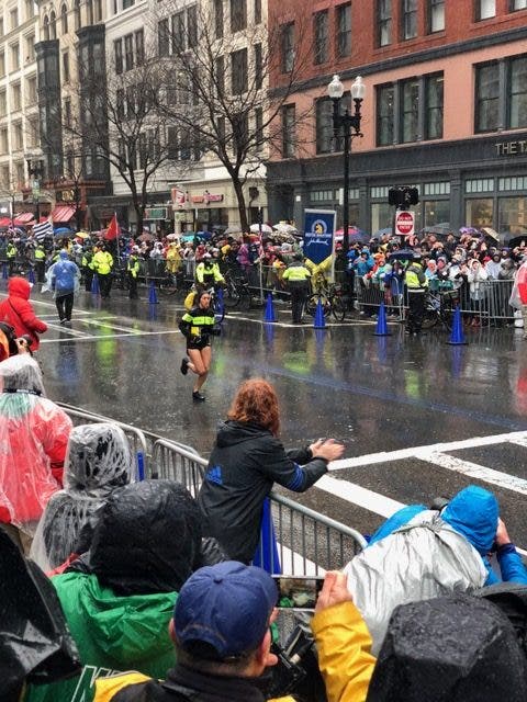 Today’s race started with intense weather conditions that included a 37-degree start in Hopkinton, pouring rain all along the course and headwinds that were reported to be as strong as 10 miles per hour. As a result, the elite women’s group started the race slowly, sticking together in a pack before Mamitu Daska of Ethiopia broke away and created a wide gap that held for several miles. Before the gap grew, Linden broke from the pack in the opposite direction, staying by Shalane Flanagan’s side for a brief pitstop before rejoining the group. It was’t until the infamous Newton Hills that Daska began falling back, giving Linden an opportunity to leave the group behind and catch up. Then, it was Linden’s turn to create a gap of her own—and that she did, making the turn onto Boylston Street far ahead of her competitors and finishing more than four minutes in front of the second-place finisher, American Sarah Sellers.