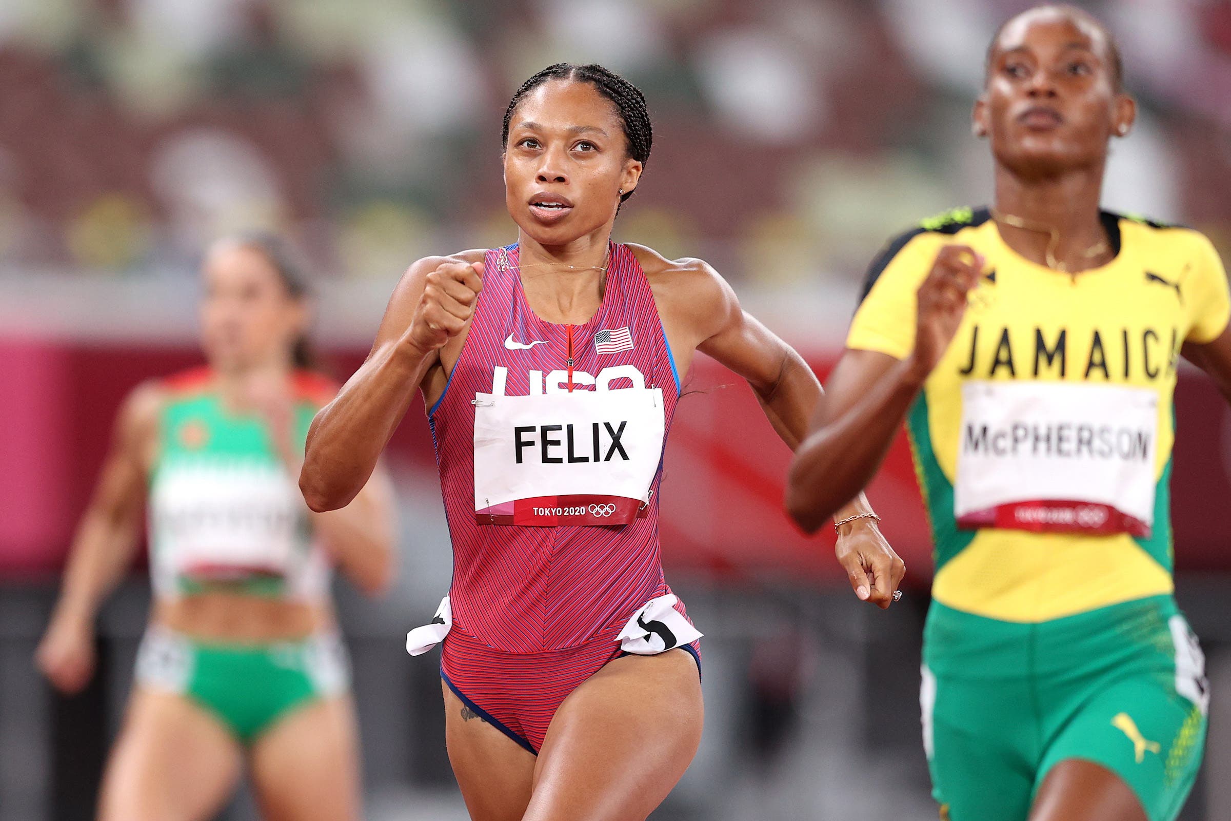 Felix cruised into the finish with no pressure, ahead of Roneisha McGregor of Jamaica (51.14) and Lada Vondrova from the Czech Republic (51.14). But Felix isn’t quite ready to talk about the final farewell—she said after the race that she’s ready to “bump it up” in the semifinal.