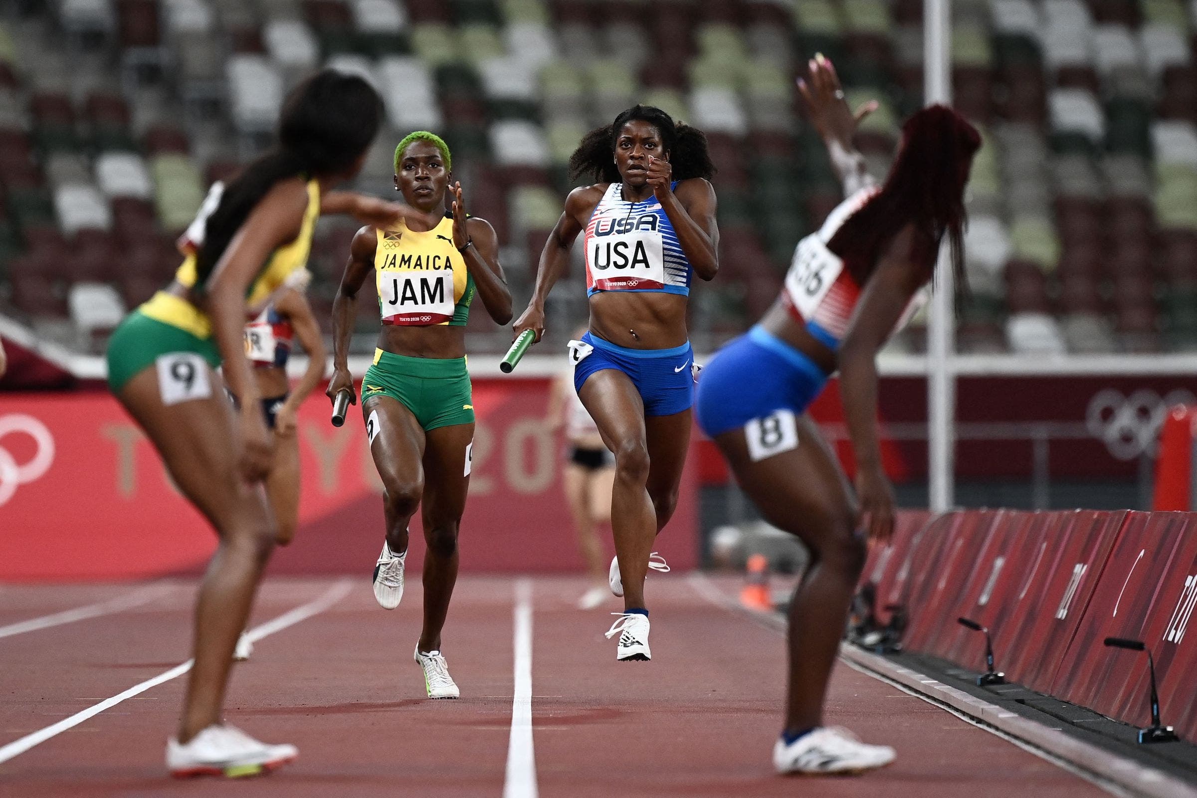Team USA, previous champs in the women’s 4x100m relay, finished second behind Jamaica in the final on Friday in Tokyo.