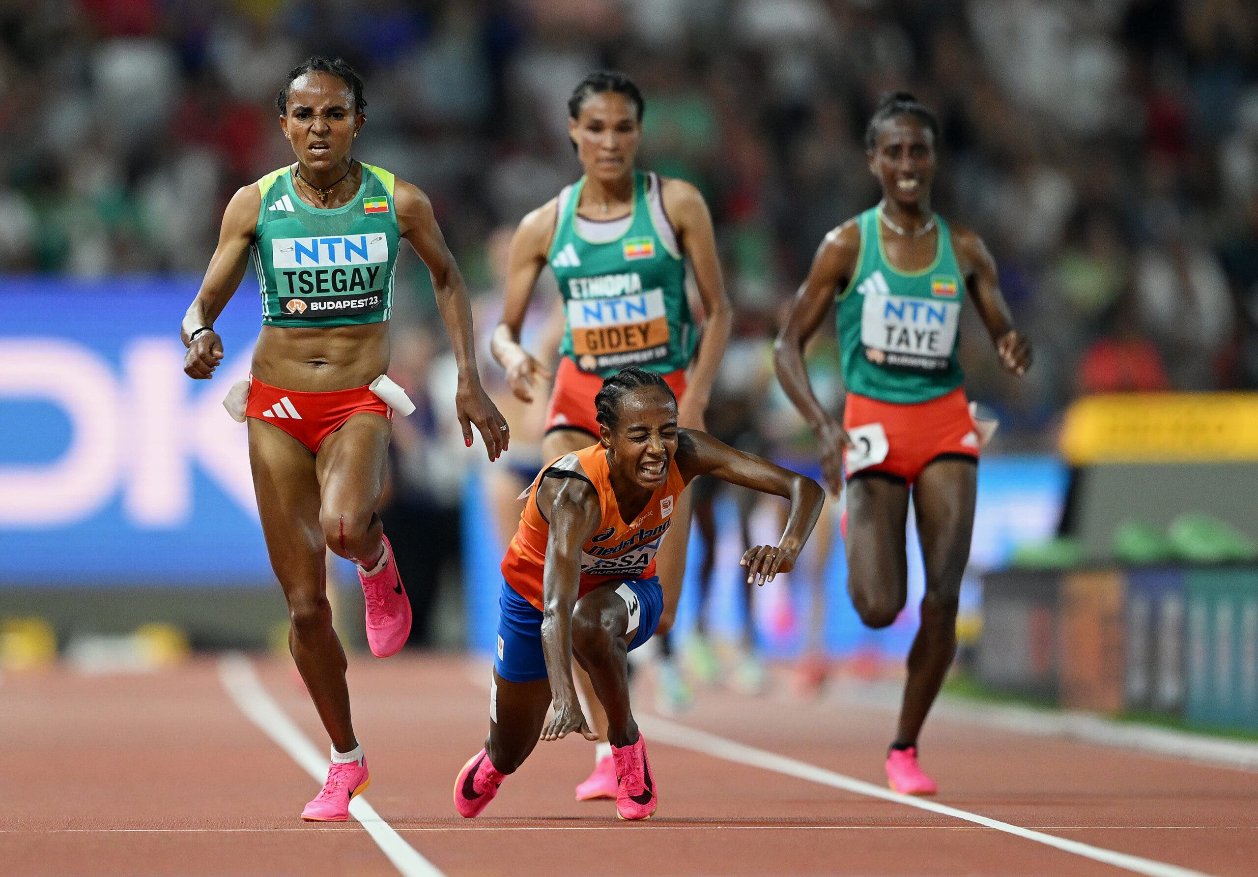 It was fan favorite Sifan Hassan’s race until she flew into the air and smacked onto the track with just meters to go. Her shocking fall opened the race for team Ethiopia to sweep the podium. American Alicia Monson hung on until the very end, claiming fifth and proving that American distance running is alive, well, and knocking at the door of the world’s best.