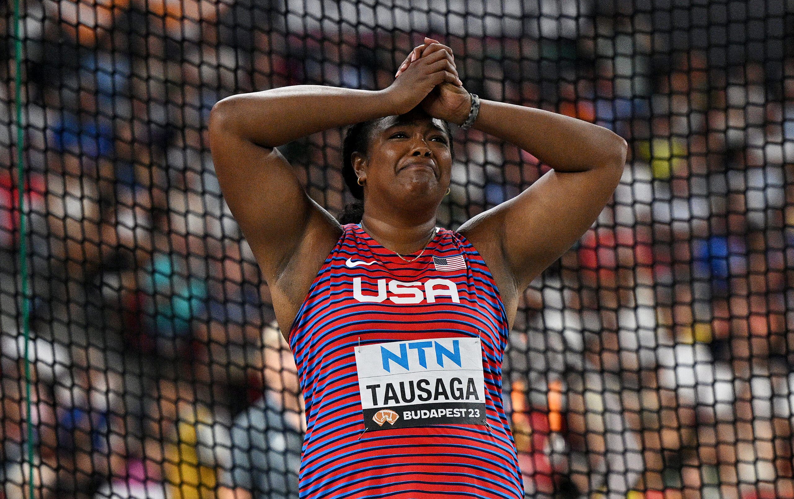 She almost didn’t qualify to be here. Now she’s the world champion. After just squeaking under the world standard during the sixth and final round at USAs, America’s Laulauga Tausaga set a huge personal best to earn America’s first-ever world title in the discus.