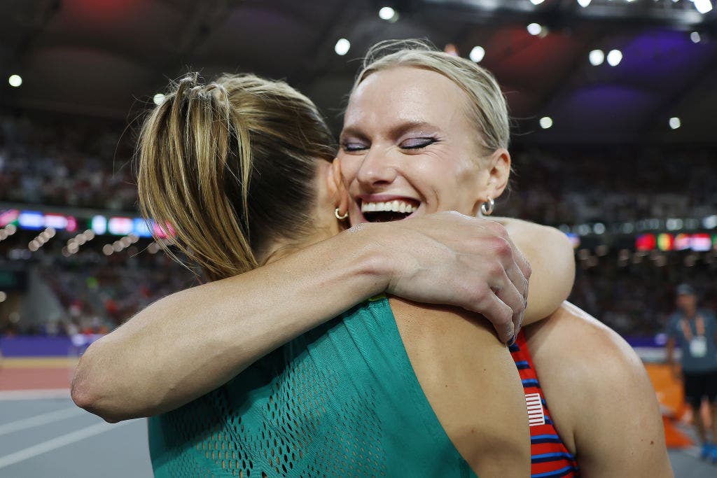 Tausaga overcame stiff competition to secure her title, including from her U.S. teammate Valarie Allman. Allman came into the meet as the defending OIympic champion and 2022 world champs bronze medalist. She wanted the win, and ended up throwing less than three tenths of a meter shorter than Tausaga to take home silver and secure America’s one-two punch in the event. It’s the first time the U.S. has ever earned silver and gold at the world champs. Bin Feng of China earned the third podium spot.