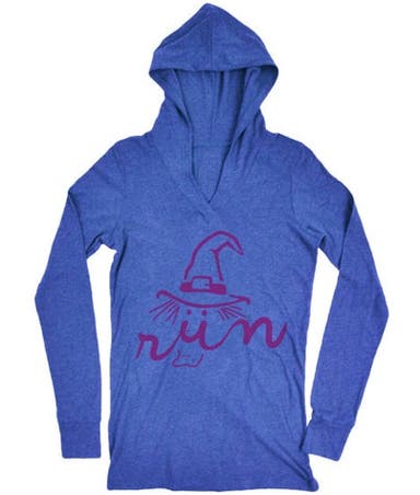 In addition to featuring the outline of a witch’s head–complete with her hat, wart and a significantly pointed chin–this lightweight, moisture-wicking pullover comes in gray and blue and is loose enough to work as a layer when worn over other workout clothes. For those running in warmer climates, Gone for a Run has similar designs available in tees and tanks. Bonus: if you get discouraged mid-run, just glance down at the witch on the front of your shirt and she’ll quite literally tell you to “run.”