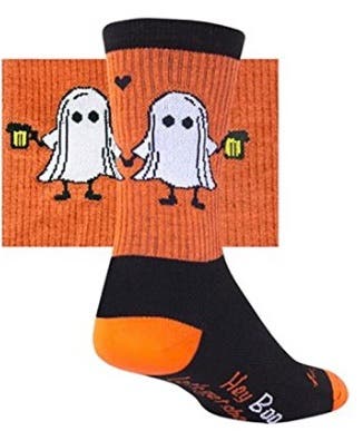 These socks are better suited for hiking, biking and other cross-training activities than they are for running, but the adorable hand-holding ghosts they feature are too adorable to pass up. They also include a punny phrase perfectly suited for Halloween hijinx on the foot: “Hey Boo, let’s get sheet-faced.”