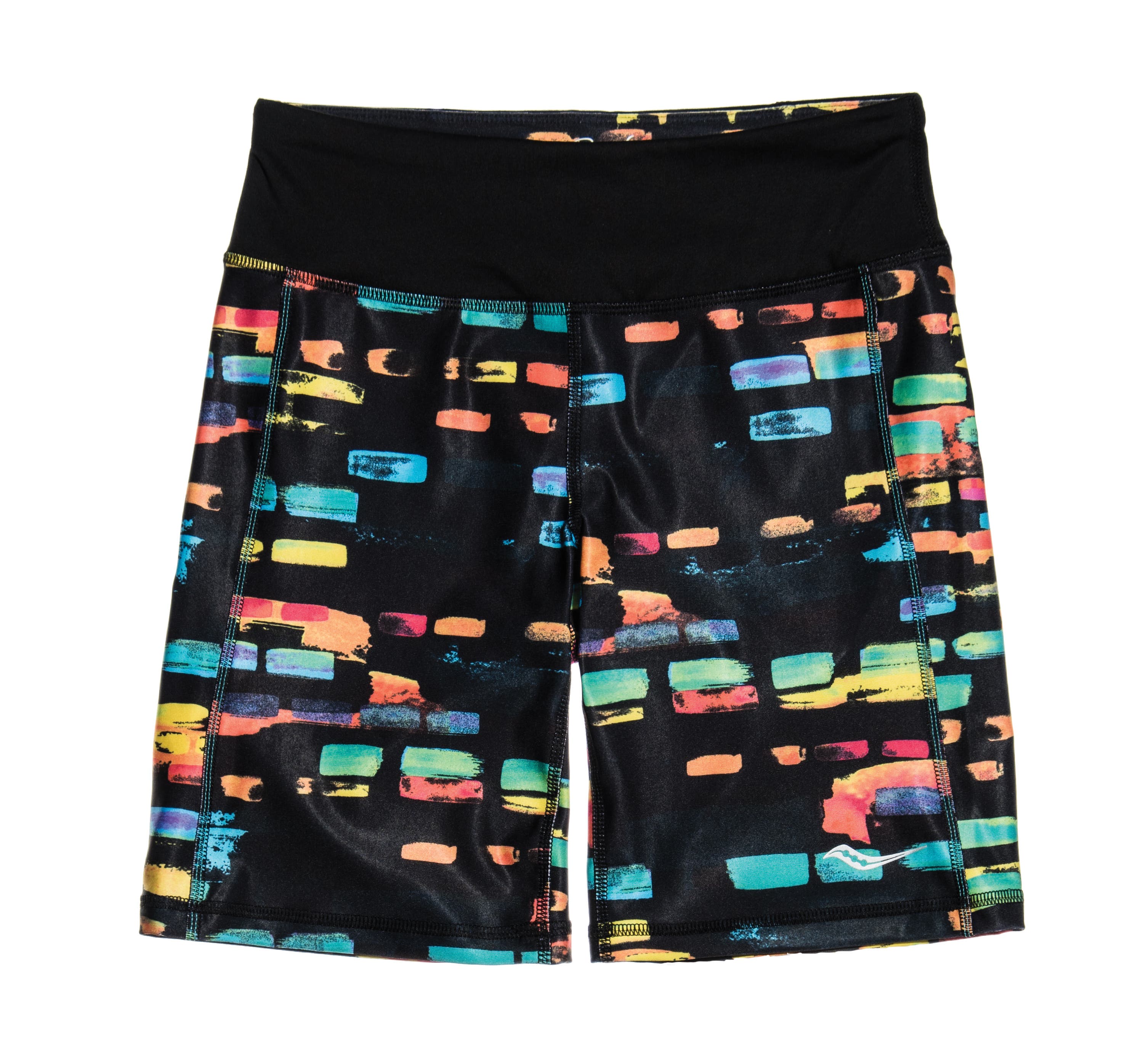 The fix: Cute, fitted biker shorts set the tone for a fun run, even if it’s a super-sweaty one. The 5-inch inseam on this patterned number provides just enough length to stop chafing in its tracks, but it’s short and light enough to keep you cool for the duration. Fitted but not at all restrictive, these 4-way stretch mid-rise shorts have a zippered waistband pocket at the back and colorful pattern on top—the modest black below makes them highly practical.