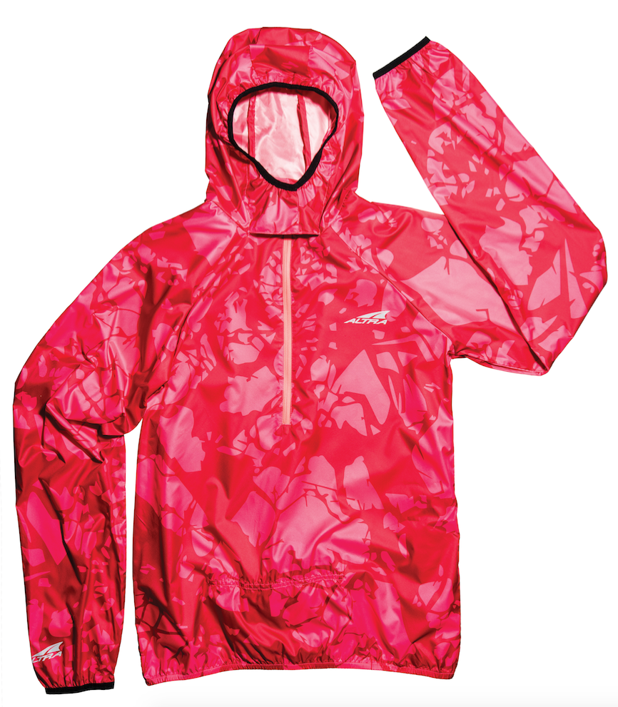 The fix: When you want lightweight protection from the elements, all you need is this ingenious little jacket that stows away in a waist pouch. Slip your arms into the armholes and pull it overhead; velcro secures it in back, giving coverage but leaving space for a pack if you have one. Talk about multitasking. It lets you run and then some with wind- and water-resistance.
