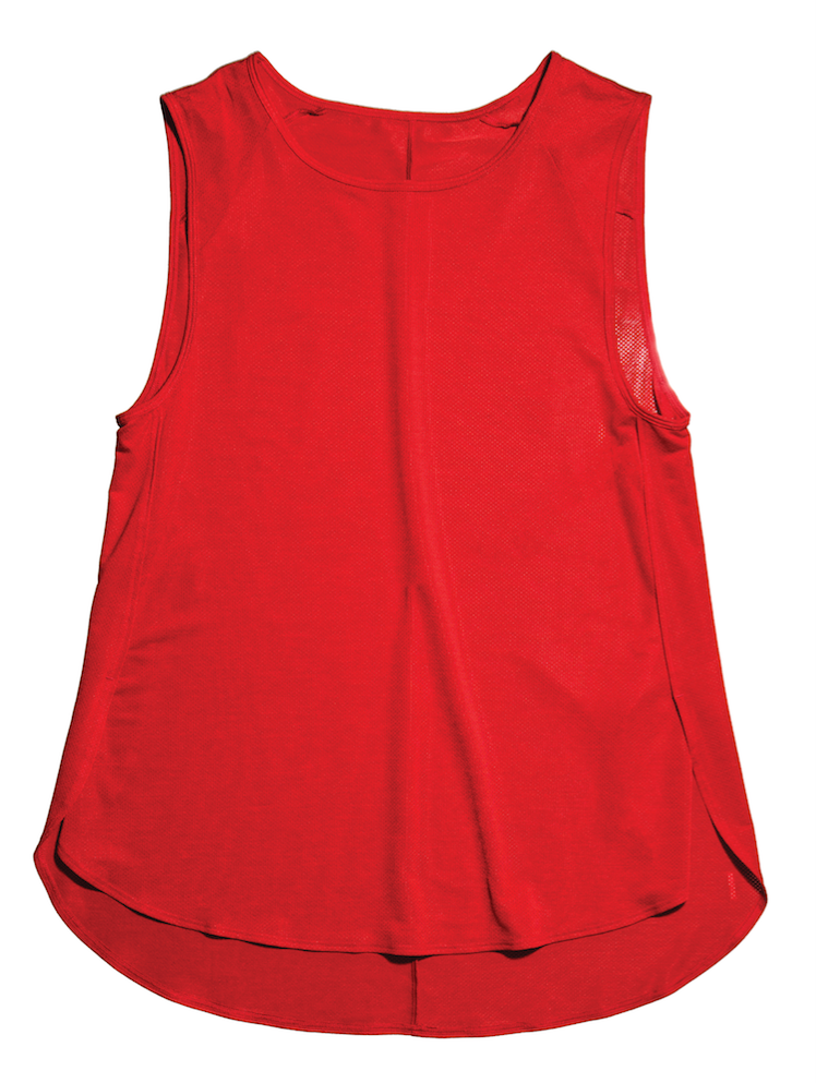 The fix: Breezy is the way to be with a tank that won’t weigh you down. The microperforations on this mesh tank allow perfect airflow, as does the looser fit, so sweat dries quickly. The longer front and back lend modesty, yet side slits allow for greater range of motion. Available in plus sizes in two colors.