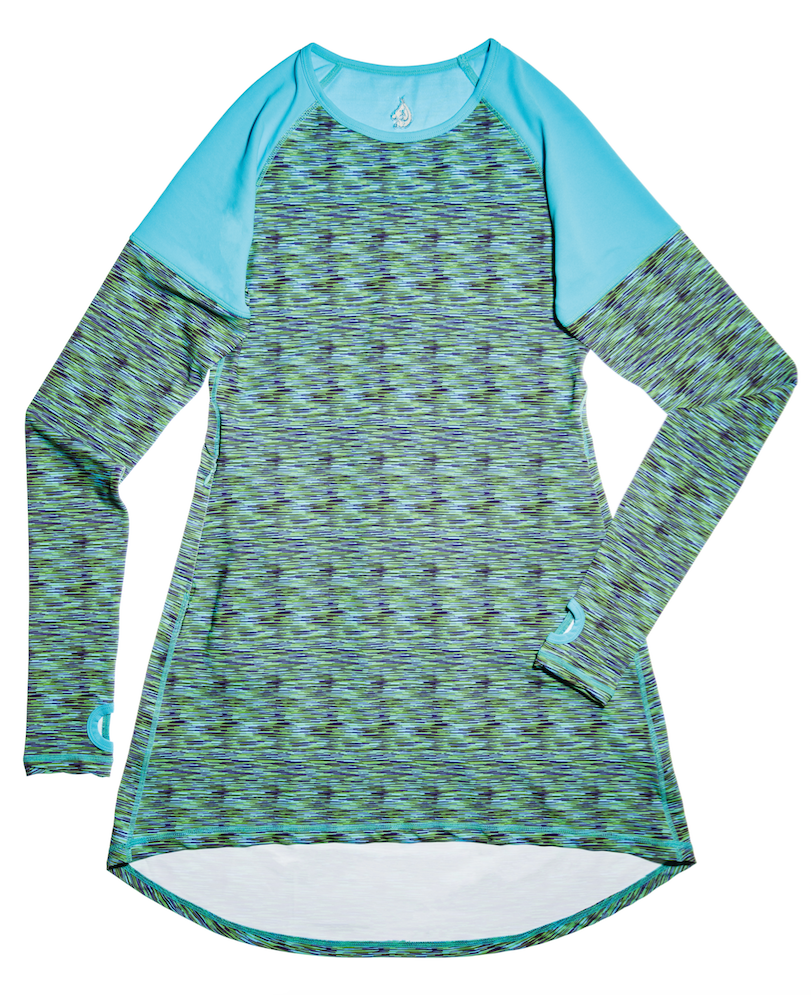 The fix: You’ll get ideal coverage with this long-sleeved tunic—the hem falls to mid-thigh. Moisture-wicking fabric and mesh panels will keep you cool no matter what, and flat-lock seams help reduce chafing. A pleat in the back increases mobility, thumb holes keep sleeves down and two hidden zipper pockets add utility.