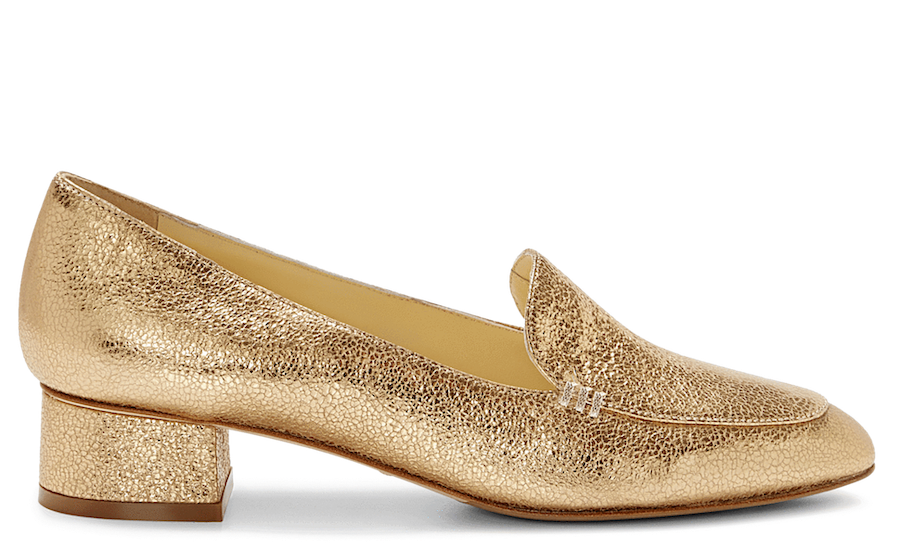 “Fancy shoes” typically don’t make comfort a priority. But with a roomy toe box, extra padding in the footbed, and a 1-inch heel, these metallic loafers were built to move. $345, sarahflint.com