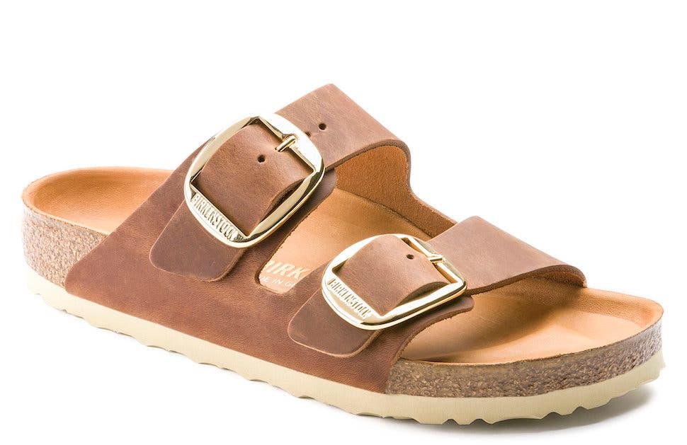 The large, eye-catching pin buckle gives an elevated look, while the anatomical cork footbed and EVA outsole give a supportive, comfortable feel. $150, birkenstock.com