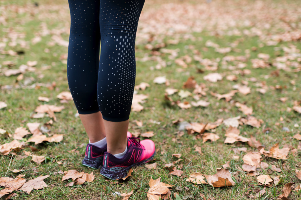 Let’s start with the leggings/crops. They feature a pretty polka dot pattern on the lower part of the leg that is both functional and stylish. The silver dots are reflective, ensuring you can be seen on your darker winter runs. The other holes are laser cut perforations that make the leggings breathable. Of course, no running leggings are complete without a pocket for your phone, keys or gel (these have a handy zip pocket in the back).