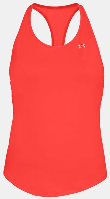 This bright coral tank is perfect for when the weather starts heating up (or for those of us who quickly overheat on runs!). It has a loose, relaxed fit and features fabric that helps disperse body heat, wicks sweat and provides extra breathability through a mesh panel on the back. We love the dropped hem in the back for a little extra coverage.