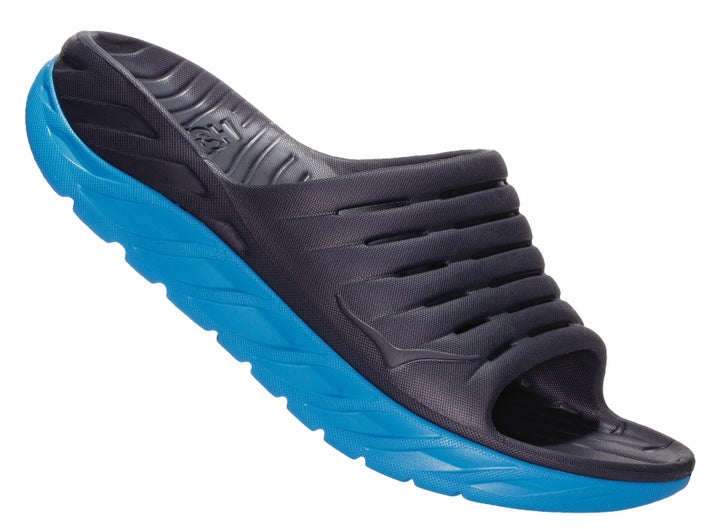 Enjoy the oversized midsole and rocker shape that Hoka is known for in a slide to give you comfort and support after a long run or a long day on your feet. A top layer of EVA with strategically placed grooves offers comfort right from step-in, and the arch support is an improvement over the original sandal. $50, hokaoneone.com