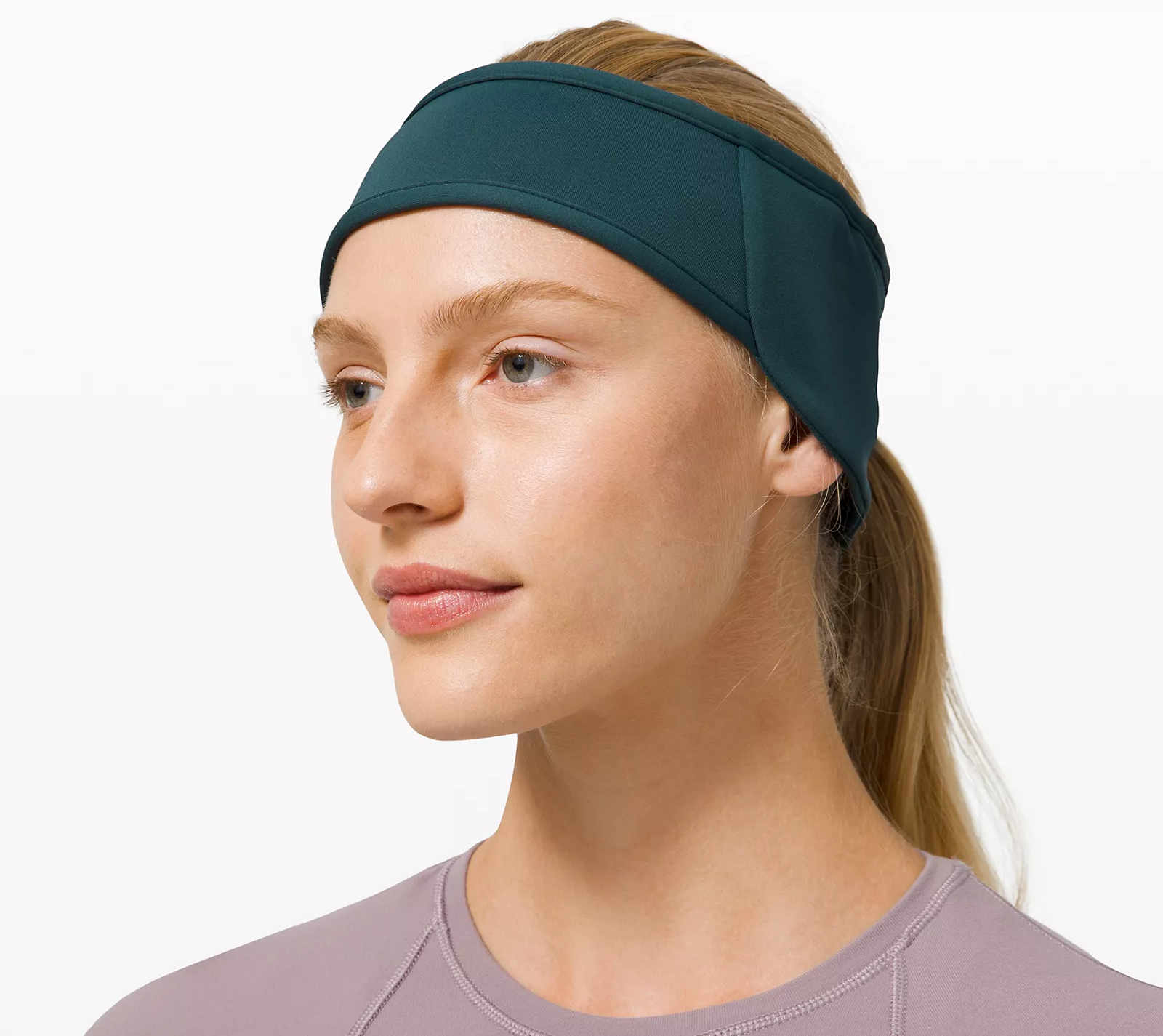 If you find that hats trap too much heat while you run in warmer winter weather, look for ear-covering headbands that keep your ears warm while preventing overheating. This ear warmer from Lululemon, with water-repellent stretch fleece, will be a cute addition to your jog look.