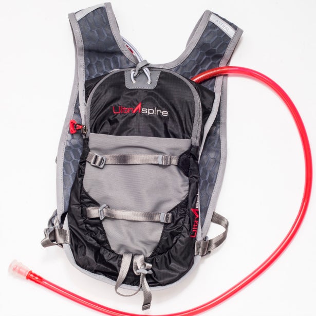 This adjustable hydration vest secures below your chest for a squish-free fit.