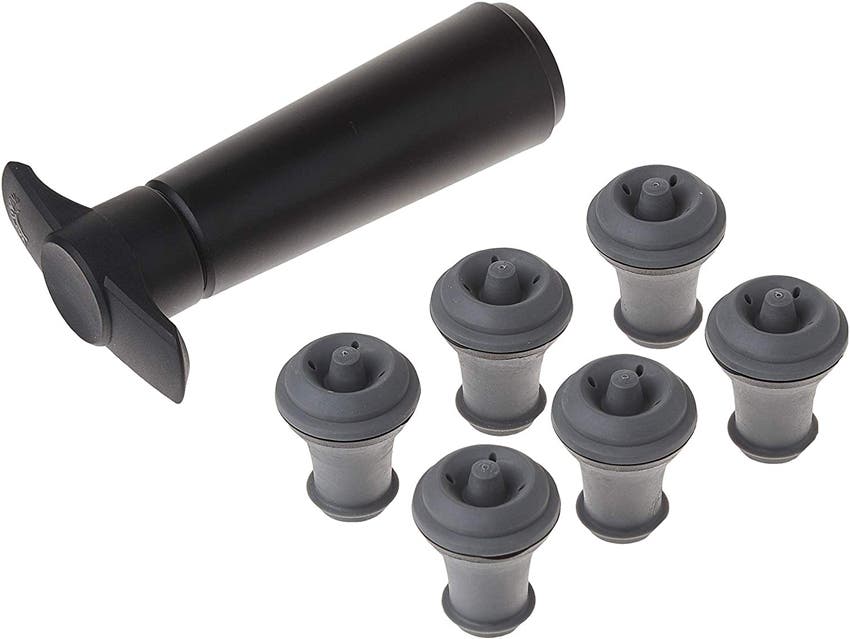 A genius gift for any woman who loves wine. The pump removes excess air from any opened bottle and the rubber stopper seals it, creating an airtight system that prevents the oxidation process and preserves your opened bottle for well over a week. $19.99, amazon.com