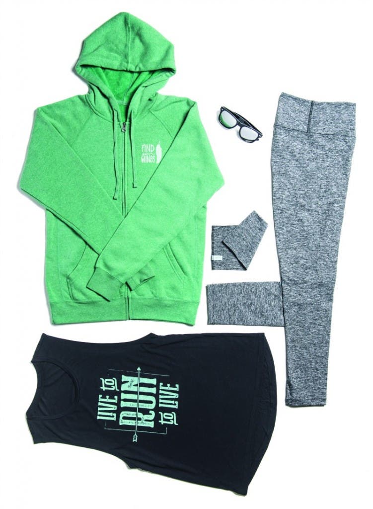 The company’s “Find Your Wings” motto is on the front and the back of this beautiful hoodie. Whether you’re wearing it for a warm-up or post-run, you’ll no doubt appreciate the soft, plush inside and the really nice fit whether zipped up or left open. With unisex sizing, I went with a small, and it was just right. After a few wears, I’ve started to see some pilling under the arms.